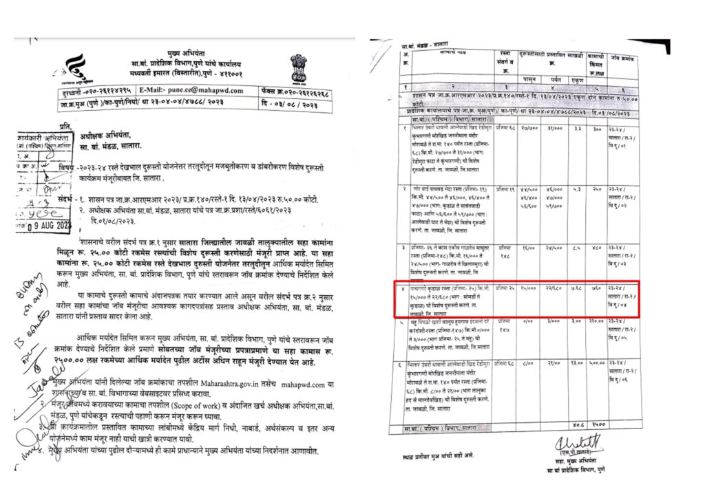 कुडाळ (प्रतिनिधी) – राज्याचे सार्वजनिक बांधकाम मंत्री नामदार श्रीमंत छ.शिवेंद्रराजे भोसले हे मंत्री झाल्यापासून संपुर्ण तालुक्याचा गतिमान विकास सूरू असून जावली तालुक्यातील सर्वात मोठी लेकसंख्या असलेल्या कुडाळ गावातही कोट्यावधी रूपयांची विकासकामे सूरू झालेली आहेत, कुडाळ गावातील अंतर्गत मुख्य रस्ता संभाजी महाराज चौक – बाजारपेठ – हायस्कूल रस्ता- इंदीरानगर चौक हा रस्ता देखील खूप खराब झाल्याने आमचे नेते व प्रतापगड कारखान्याचे चेअरमन सैारभबाबा शिंदे यांच्या मार्गदर्शनाखाली कुडाळ ग्रामपंचायतीच्या वतीने नामदार शिवेंद्रराजे भोसले यांना सदरच्या रस्त्याच्या कामाबाबात पत्रव्यवहार करून निधीची मागणी करण्यात आली होती, सदरच्या कामाला सार्वजनिक बांधकाम विभागाने जावक क्रमांक. मुअ,पुणे,नियो.धा.23.04.04/4788/2023 या संदर्भीय पत्रानुसार 2023 सालामध्येच मंजूरी देण्यात आलेली होती, मात्र काही तांत्रिक अडचणी व निधी अभावी सदरच्या रस्त्याचे काम थांबले होते, त्यानंतर नामदार बाबाराजेंच्याकडे बांधकाम खात्याचे मंत्रीपद आल्यानंतर तात्काळ या कामांना निधी उपलब्ध झाला असल्याने या रस्तायाच्या कामाला आता सुरूवात होत आहे, मात्र आज ज्यांचा या कामाशी दूरपर्यंत कसलाही संबंध नाही त्यांनी सदरचे कामाबद्दल फोटोसेशन करून केवळ दिशाभूल करण्याचा केविलवाणा प्रयत्न केला आहे, मात्र अशा दिशाभूलीला सुज्ञ जनता भुलणार नसल्याचे मत कुडाळच्या सरपंच सैा.सुरेखा कुंभार यांनी प्रसि्धदीपत्रकाद्वारे व्यक्त केले आहे.